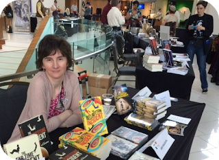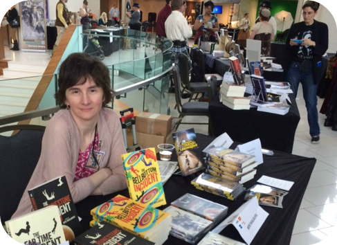 Yesterday was a travel day plus the frame of my reading glasses broke so I couldn’t see well enough to post, but now I’m back home and the glasses have been fixed. I had an absolutely fantastic time at AnomalyCon in Denver. I missed the big blizzard by a day or so — the snow had already mostly melted by the time I got there. The con runs from Friday afternoon to Sunday afternoon and there are various activities and panels, the main focus being Steampunk, which, for those of you who haven’t come across it before, is a sort of a Victorian era sci-fiI got to meet a lot of wonderful, enthusiastic, welcoming people: writer friends I had never met in person before (Stant Litore and Richard Preston, great to connect face to face!), lovely readers who stopped by my table to ask about my books and share their own stories, fellow panelists (all much more engaging and charismatic than I managed to be), book-table neighbors happy to answer my questions or just spend time chatting, costumed attendees walking around… in other words, just a lot of great people who share a love of science fiction and fantasy.
